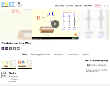 Learn about the physics of resistance in a wire. Change its resistivity, length, and area to see how they affect the wire's resistance. The sizes of the symbols in the equation change along with the diagram of a wire.This simulation of a Resistance in a Wire is from the Physics Education Technology...