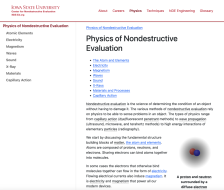This webpage from Iowa State University provides information about the physics of nondestructive evaluation. Nondestructive evaluation methods depend on principles of physics to detect issues within an object without causing damage. Information for the following principles are included: the atoms...