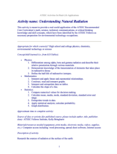 During this 2-page learning activity, from the Advanced Technology Environmental and Energy Center, students research the sources of radiation at the surface of the earth. Students will also research how radiation is measured, collect data, enter data into a spreadsheet, and learn how to report the...