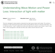 This lab, presented by the National Nanotechnology Coordinated Infrastructure, covers the concept of wave properties. During this lab, students will learn how light waves interact with matter. The activity is "analogous to light traveling through optical media having different indices of refraction...