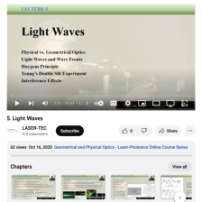 This video is part of a series from Laser-Tec that introduces learners to geometrical optics. In the video, an introduction to light waves is provided. The difference between physical and geometrical optics, the physics of waves and wave motion, wave motion in space and time, electric and magnetic...