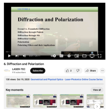 This video is part of a series from Laser-Tec that introduces learners to geometrical optics. In the video, diffraction and polarization are introduced. Viewers learn about the difference between diffraction and interference, pinhole diffraction, single-slit diffraction, straight-edge diffraction,...