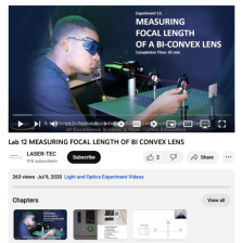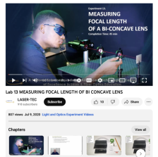 This video from Laser-Tec is part of a series of light and optics experiments. In this lab, participants measure the focal length of a double convex or bi-convex (DCX) lens. The tracing of light rays by an infinite source through a DCX lens and applications of DCX lenses for improving human vision...