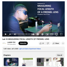 This video from Laser-Tec is part of a series of light and optics experiments. In this lab, participants measure the focal length of a Fresnel lens. Equipment includes an LED flashlight, flashlight holder, Fresnel lens, lens holder, measuring tape, pencil, and white sheet of paper. The video...