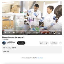 This 2019 promotional video provides information about the biotechnology program at Los Angeles Mission College. The video provides an outline of the biotechnology field and notes that California "has the largest life sciences and biotech employment base in the U.S. with more than 235,000 nobs...