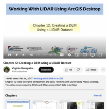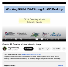 This video, provided by Virginia Geospatial Extension, is part of a series of 16 tutorial videos on using Lidar with ArcGIS Desktop. This tutorial demonstrates how to classify unassigned points in a point cloud. This video runs 10:23 minutes in length. The other videos in the series are available to...