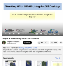 This video, provided by Virginia Geospatial Extension, is part of a series of 16 tutorial videos on using Lidar with ArcGIS Desktop. This tutorial demonstrates how to download Lidar datasets from the United States Geological Survey (USGS) using Earth Explorer. This video runs 03:58 minutes in...