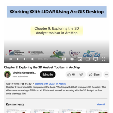 This video, provided by Virginia Geospatial Extension, is part of a series of 16 tutorial videos on using Lidar with ArcGIS Desktop. This tutorial demonstrates how to work with the 3D Analyst toolbar in ArcMap, one of the software applications of ArcGIS Desktop. This video runs 08:05 minutes in...