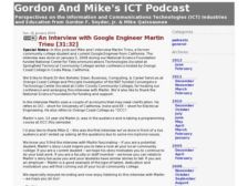 Gordon and Mike's ICT Podcast offers perspectives on the information and communication technologies (ICT) industries from Gordon Snyder and Mike Qaissaunee. In this podcast, Mike and Gordon interview Martin Trieu, a former community college student and current Google Engineer from California. In the...