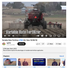 This video, provided by AgPhD, discusses the advantages of variable-rate fertilizer application. Productivity can vary throughout a farm field, so some areas need more fertilizer than others. This video discusses setting up a plan to decide on how much fertilizer to use on different areas of a...