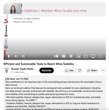 This webinar from Bucher Vaslin North America provides information about wine stability. During the video, presenter Elifantine Chauffour discusses "the enological tools available for wine stabilization including microbial, protein, tartrate, aroma, and color stability." The webinar focuses on "...