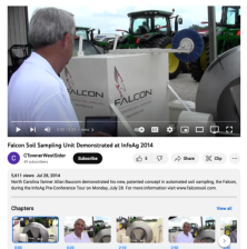 In this video, provided by Falcon Soil Technologies, farmer Allan Baucom discusses why the Falcon was created and demonstrates how it works. This automated soil sample probe was created because of a need for quality and consistent soil sampling. This video runs 06:29 minutes in length.