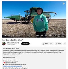 In this video Zach Johnson shows how a John Deere 9870 combine tractor works. Johnson explains how the combine separates the corn cob from the plants, how it threshes the kernels from the cob, and more. The video runs 08:54 minutes in length.
