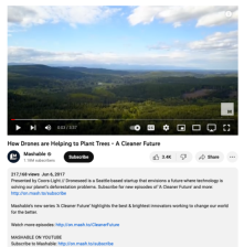 This video, made available by Mashable, discusses how drones can be used to combat deforestation more efficiently than traditional methods. The video is narrated by Grant Canary, CEO of Droneseed, a "Seattle-based startup that envisions a future where technology is solving our planet's deforestation...