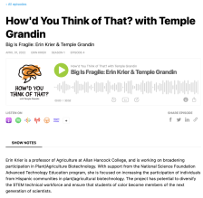 This podcast is hosted by Temple Gardin and is provided by the STEM Action Center. This podcast features STEM professionals discussing their work and the benefits of a multifaceted approach to STEM education. During episode four, Gardin talks with Erin Krier, professor of Agriculture at Allan...