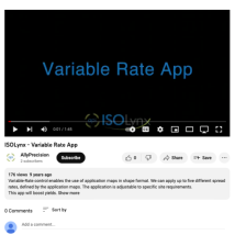 This video provides information about the IsoLynx Variable Rate Control application. "Variable-Rate control enables the use of application maps in shape format. Users can apply up to five different spread rates, defined by the application maps." This video runs 1:45 minutes in length.