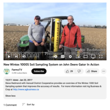 This video, published by Farms.com, is a demonstration of the Wintex1000S soil sampling system on a John Deere Gator. The system's features and advantages are described in detail and it is also compared to the hand probe technique. The recording runs 2:53 minutes in length.
