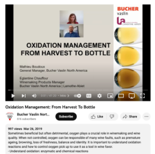 This webinar from Bucher Vaslin North America highlights post-fermentation steps in winemaking, how to preserve wine aging potential, and how to maintain freshness and extend shelf life. In the video, Eglantine Chauffour provides information on oxidation in winemaking, discusses how winemakers can ...