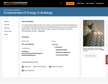 This page is a course overview for Massachusetts Institute of Technology’s (MIT) course 4.42, Fundamentals of Energy in Buildings. Topics covered include heating and cooling systems, heat transfer of building materials, air and water vapor effects, and design strategies. The site provides a...