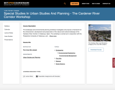 This page is a course overview for Massachusetts Institute of Technology’s (MIT) course 11.943, Special Studies in Urban Studies and Planning - The Cardener River Corridor Workshop. It is designed to serve as an introductory course in urban design, providing a general survey of urban planning...