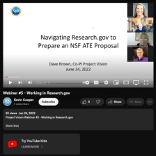 This webinar, published by Project Vision, explores how administrators and educators can navigate Research.gov to prepare National Science Foundation (NSF) Advanced Technological Education (ATE) proposals. In the video, Dave Brown describes the login process, the organization of proposal contents,...