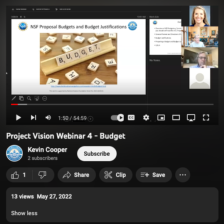 This webinar, published by Project Vision, explores budgets and budget justifications for National Science Foundation (NSF) grant proposals. In the video, Dave Brown talks about budgets generally and provides an overview of Advanced Technological Education (ATE) budgetary considerations, information...