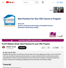 In this webinar, published by the the Florida Advanced Technological Education Center for Manufacturing (FLATE), Shera Gill from Northwest Florida State College provides an overview of running a successful control numerical control (CNC) program. First, Gill discusses the path to becoming a CNC...