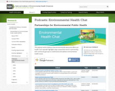 Produced by the National Institute of Environmental Health Sciences, Environmental Health Chat is a podcast focused on exploring "how environmental exposures affect ... health" with each episode highlighting "ways researchers work in partnership with community groups to understand and address...