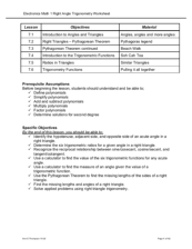 This Right Angle Trigonometry lesson, from the Contextualize to Learn project at the University of Wisconsin - Madison, is part of a series of seven applied electronics math lessons. This lesson starts with an introduction to angles and triangles, similar triangles, scaling, the Pythagorean theorem,...
