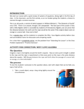 This collection of curriculum, from Norwalk Community College, includes a set of activities and application problems for intermediate algebra classes. These materials are intended to promote STEM majors and careers for students, especially to women in the course. The idea behind this...