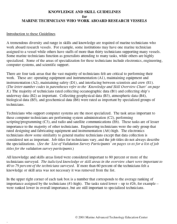 This document, created by the Marine Advanced Technology Education (MATE) Center draws from surveys conducted with Marine Technicians about which skills they felt were most important for their particular career. The document is divided up into task areas, and each respondent was asked to rate the...