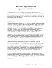 The Marine Advanced Technology Education Center (MATE) has provided this overview of knowledge and skill guidelines for aquaculture technicians. The report begins with detailing the background of the creation of these guidelines, which occurred at the third annual Rhode Island Aquaculture Conference...
