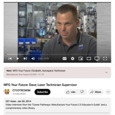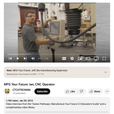This short video, created by National Center for Next Generation Manufacturing (NCNGM), explores careers in advanced manufacturing. The state of Connecticut is looking for community colleges to produce the next generation of skilled workers in this increasingly growing field. Some of the possible...
