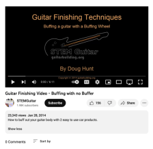 This video, from the LEAD with Guitars in STEM project, demonstrates the process of buffing a wet-sanded guitar body without the use of a mechanical buffing wheel or in places where the wheel can't reach. The host, Doug Hunt, introduces the two car products he'll use before demonstrating the process...