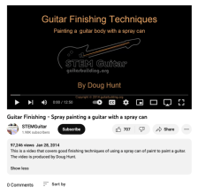 This video, from the LEAD with Guitars in STEM project, demonstrates the process of spray painting a sealed electric guitar body with a can of spray paint. The host, Doug Hunt, explains the process of preparing the guitar body for painting, and offers some tips and tricks for the spray painting...