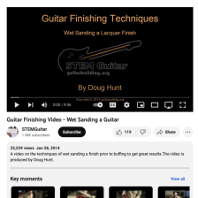 This video, from the LEAD with Guitars in STEM project, demonstrates the process of wet sanding the body a guitar after spray painting in order to prepare it for buffing and polishing. The host, Doug Hunt, explains the importance of wet sanding before demonstrating the set-up process and the...