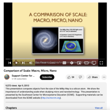 This video, created by Support Center for Microsystems Education (SCME), provides an overview of the concept of scale, including micro, nano, and macro scales. The video runs for 14:28 minutes in length, and compares "compares objects from the size of the Milky Way to a silicon atom. We show the...