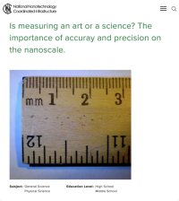 This lab, presented by the National Nanotechnology Coordinated Infrastructure, introduces students to the difficulty to of measuring at the nanoscale. Accuracy and precision are the most important principles or measuring at such a small scale, and with the growing demand for nanotechnology careers,...