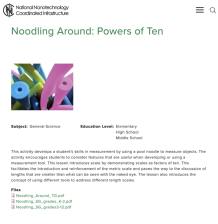This lesson, presented by the National Nanotechnology Coordinated Infrastructure, covers the general concept of scale by demonstrating factors of ten. The activity "facilitates the introduction and reinforcement of the metric scale and paves the way to the discussion of lengths that are smaller than...