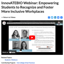 This video from InnovATEBIO highlights how community colleges can empower their students to recognize, request, and foster more inclusive workplace practices. Practical tools that strengthen the working relationship between student interns and their internship mentors are explored. These tools...