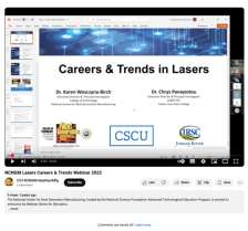 This webinar recording from the National Center for Next Generation Manufacturing (NCNGM) focuses on careers and trends in laser manufacturing. Dr. Karen Wosczyna-Birch, Assistant Director for the College of Technology and NCNGM, provides an overview of the College of Technology and the NCNGM's role...