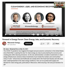 This video, published by the Wisconsin Energy Institute, is part of a monthly forum series on clean energy. In these videos, panelists discuss the global transition to clean energy. The forum's goal is to "encourage cross-disciplinary dialogue to explore the important technical, social, political,...