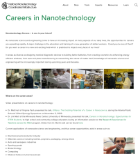 When people think of career paths, nanotechnology is probably not on the forefront of their minds. Perhaps it should be. This website, created by the National Nanotechnology Coordinated Infrastructure, shows that nanotechnology will have “increasing impacts on many aspects of our daily lives, the...