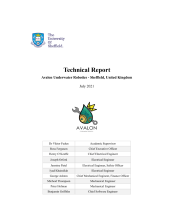 This 17-page report, published by the University of Sheffield, describes the design and construction of an underwater remotely operated vehicle (ROV). This report was created by Avalon Underwater Robotics, a student group that participated in the 2021 MATE ROV competitions Explorer class. MATE ROV...