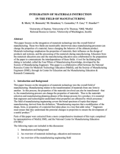 This 14-page paper is provided by MatEdU: National Resource Center for Materials Technology Education and covers "... the integration of materials technology into the overall field of manufacturing." This paper includes the following sections: Abstract, Introduction and Background, Overview of the...