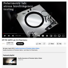 This video, made available by the National Center for Optics and Photonics Education (OP-TEC), demonstrates quality assurance strategies for precision optics in a lighted inspection box. In the video, several types of scratch-dig references and a Loupe magnifier are used to test scratches and digs....