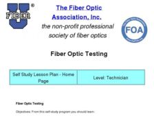 This website from the Fiber Optic Association is a self-study course on fiber optic testing. This site includes learning objectives, definition, prerequisites, references, videos, lesson plans, and more. The six lesson plans included are Overview of fiber optic testing; Fiber optic test parameters...