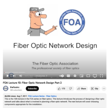 This is the 10th lecture in the FOA series on fiber optics. This lecture introduces the process of designing and planning a fiber optic network. Running time for the lecture is 6:08 minutes.