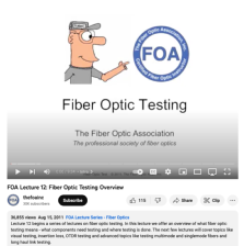 This video is lecture 12 in the FOA series on fiber optics. This lecture discusses what fiber optic testing means- what components need testing and where testing is done. This lecture begins a series of lectures on fiber optic testing. The next few lectures cover topics like visual testing,...