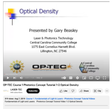 This lecture, presented by Gary Beasley, covers the basics of optical density as the concept relates to the fundamentals of light and lasers. In 7 minutes, Beasley covers the definition of optical density (a measure of how much light can be transmitted through a specimen or substance), provides...